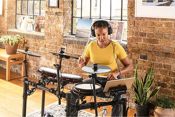 * Ampio rullante mesh dual-zone da 10” per la massima suonabilità
