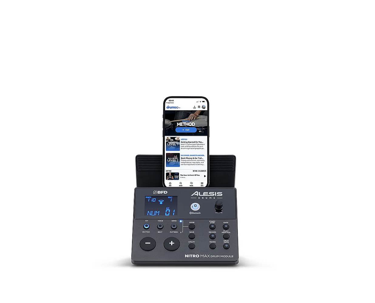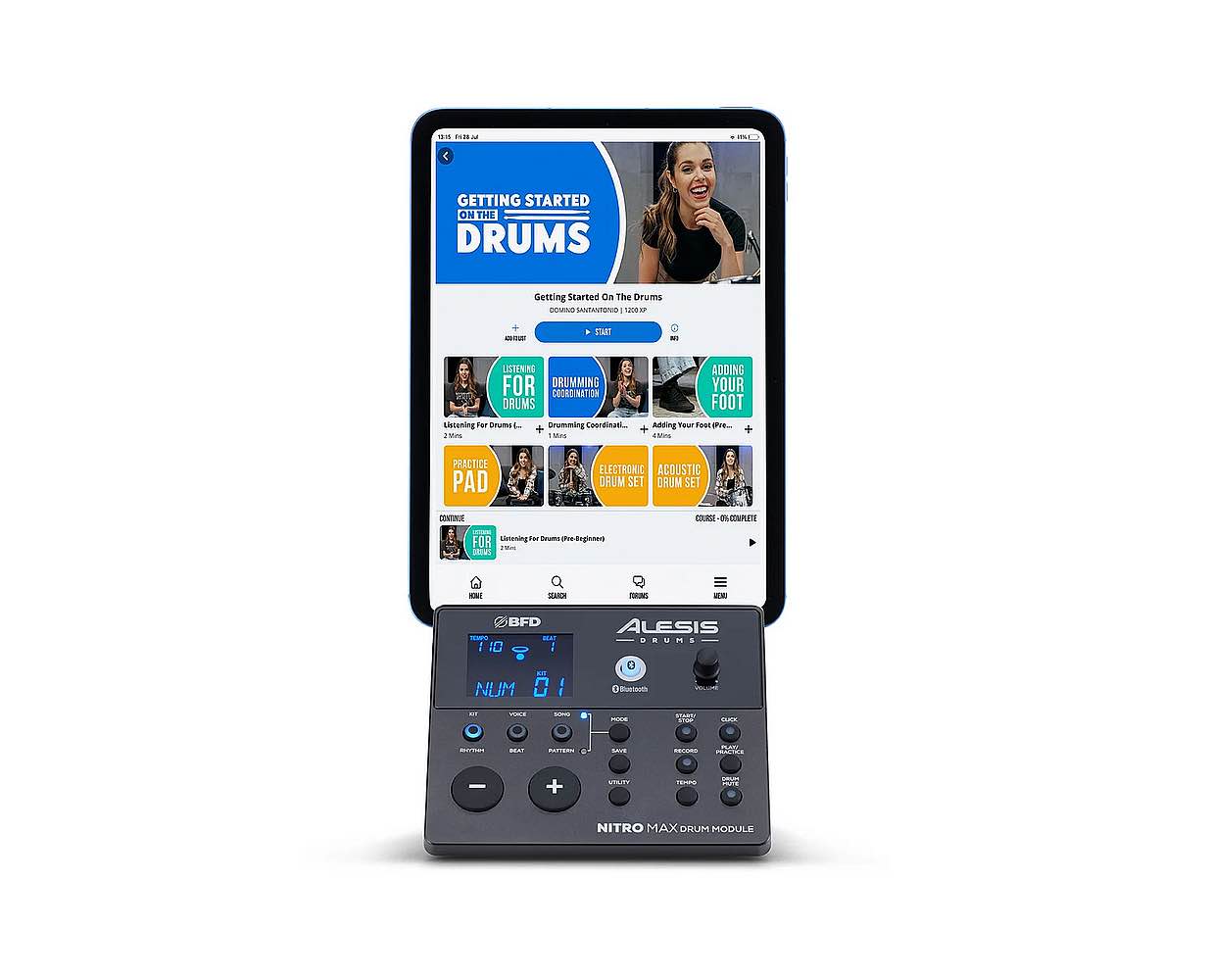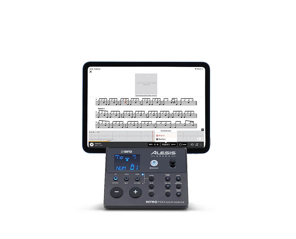 Suona insieme a basi musicali o ai tuoi brani preferiti grazie all’integrazione Bluetooth, che consente di trasmettere audio in streaming da qualsiasi smartphone o tablet compatibile. Nitro Max include anche un elegante supporto per dispositivi, progettato per ospitare la maggior parte di telefoni e tablet in posizione orizzontale, ideale per seguire lezioni o video tutorial mentre ti eserciti.
