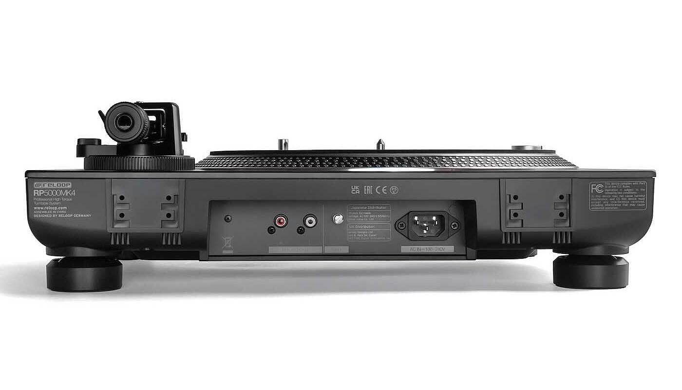 Le innovazioni e i miglioramenti di Reloop RP-5000 MK4 si distinguono davvero nell’uso quotidiano. La sua solida struttura e il telaio rinnovato, con maggiore smorzamento e piedini anti-vibrazione migliorati, garantiscono che nulla possa disturbare il giradischi DJ RP-5000 MK4. I terminali di connessione incassati consentono una perfetta integrazione in qualsiasi configurazione, anche in modalità battle. L’uscita phono placcata in oro e un connettore IEC con cavo rimuovibile offrono la massima flessibilità di cablaggio, riducendo al contempo potenziali errori. Il nuovo alimentatore switching interno riduce inoltre le interferenze indesiderate, migliorando la riproduzione del suono al massimo delle sue potenzialità.