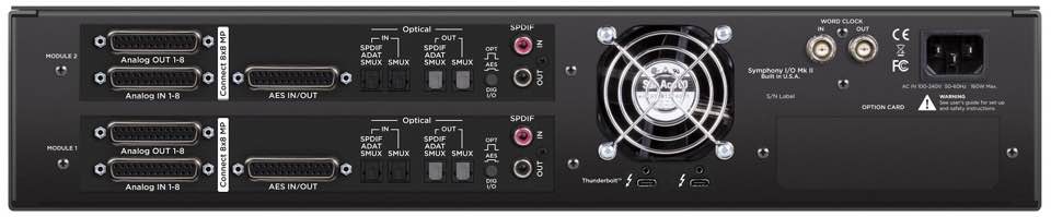 Gli utilizzatori di Symphony I/O Mk II Thunderbolt ora possono ora utilizzare 2 unità contemporaneamente, per ottenere fino a 64 canali di ingresso e uscita con connessione Thunderbolt al proprio Mac. Symphony I/O Mk II combinata con Logic Pro e un computer Mac consente di realizzare la workstation nativa più avanzata disponibile al momento, con un elevato numero di canali di registrazione di qualità superiore, ad una latenza incredibilmente bassa.